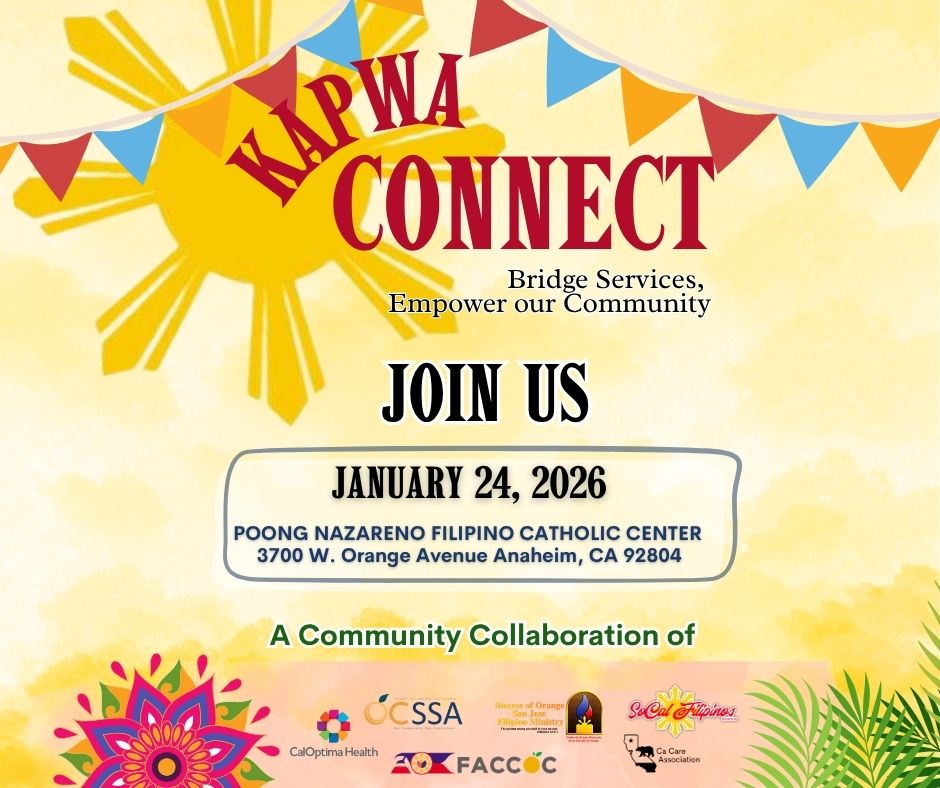 OC Animal Care is thrilled to host an information booth at the 2026 Kapwa Connect Filipino Resource Fair, hosted by SoCal Filipinos, CalOptima Health, Diocese of Orange County, San Jose Filipino Ministries, and the County of Orange Social Services Agency.  Learn about community resources, receive health screenings, and more.
