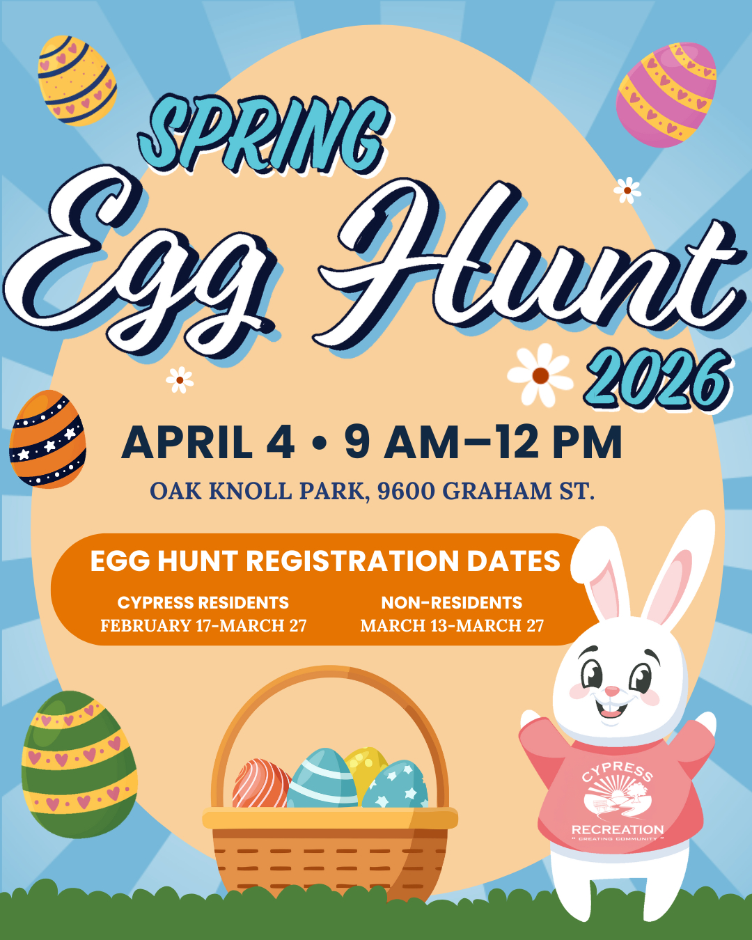 Saturday, April 4, 2026, 9 a.m. - 12 p.m. Oak Knoll Park 9600 Graham St. Cypress, CA 90630